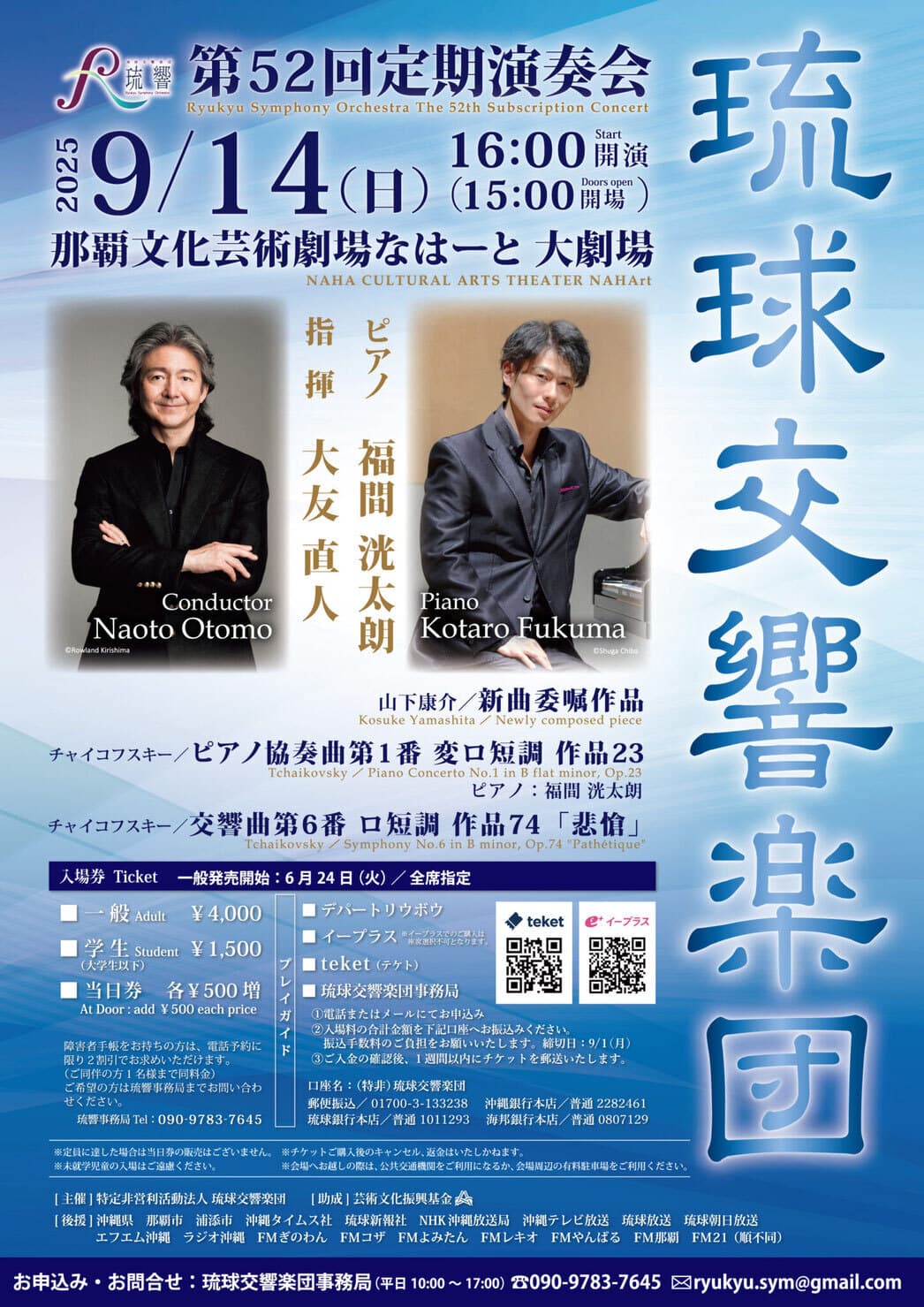 琉球交響楽団 第52回定期演奏会にて、拙作「交響的前奏曲」(委嘱世界初演)が演奏されます。どうぞお越しください。